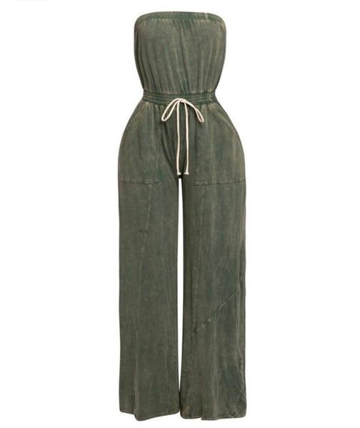 Mineral wash bandeau top jumpsuit